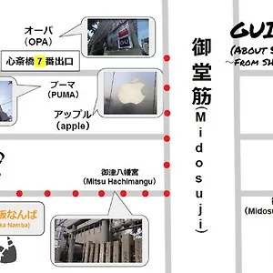 The venue is nestled in the heart of Osaka and within walking distance of Namba train station. Minami is merely 400 metres from the accommodation, while Itami airport is 20 km from it.
