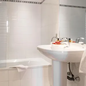 The rooms are equipped with a bathtub, a separate toilet, and a shower.